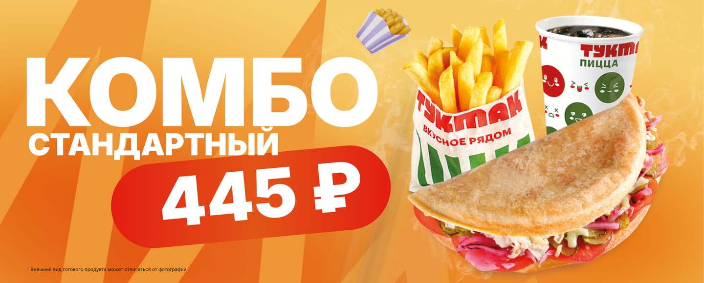 Стандартный комбоЗакрытая пицца на выбор, картофель фри, напиток на выбор