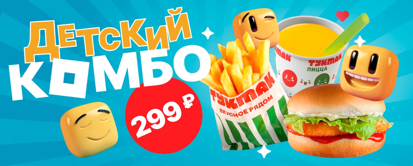 Детский комбоДетский бургер/наггетсы маленькие, картофель фри, напиток на выбор
